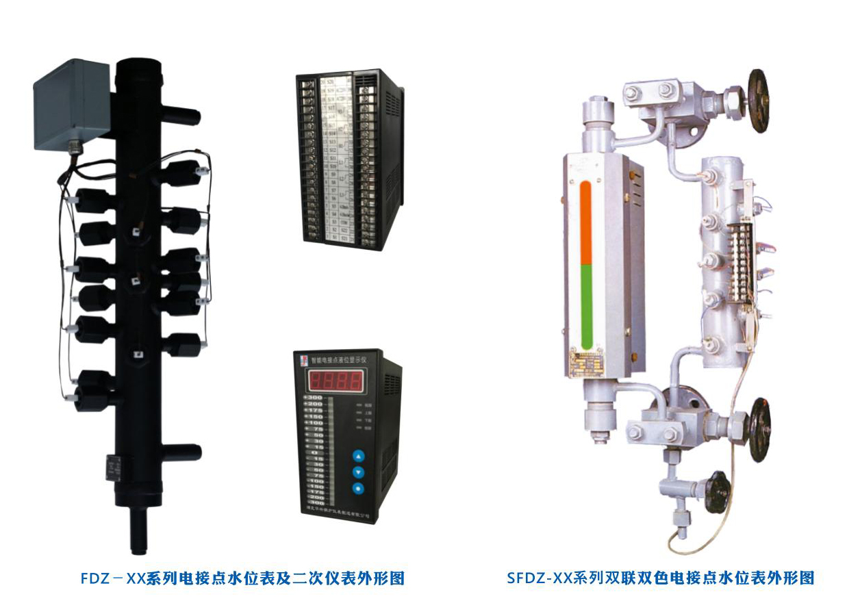電接點水位表可與雙色石英管式水位表組合在一起(即雙聯(lián)雙色電接點水位表,型號:SFDZ-XX),實現(xiàn)就地觀測和遠距離監(jiān)控雙重功能。